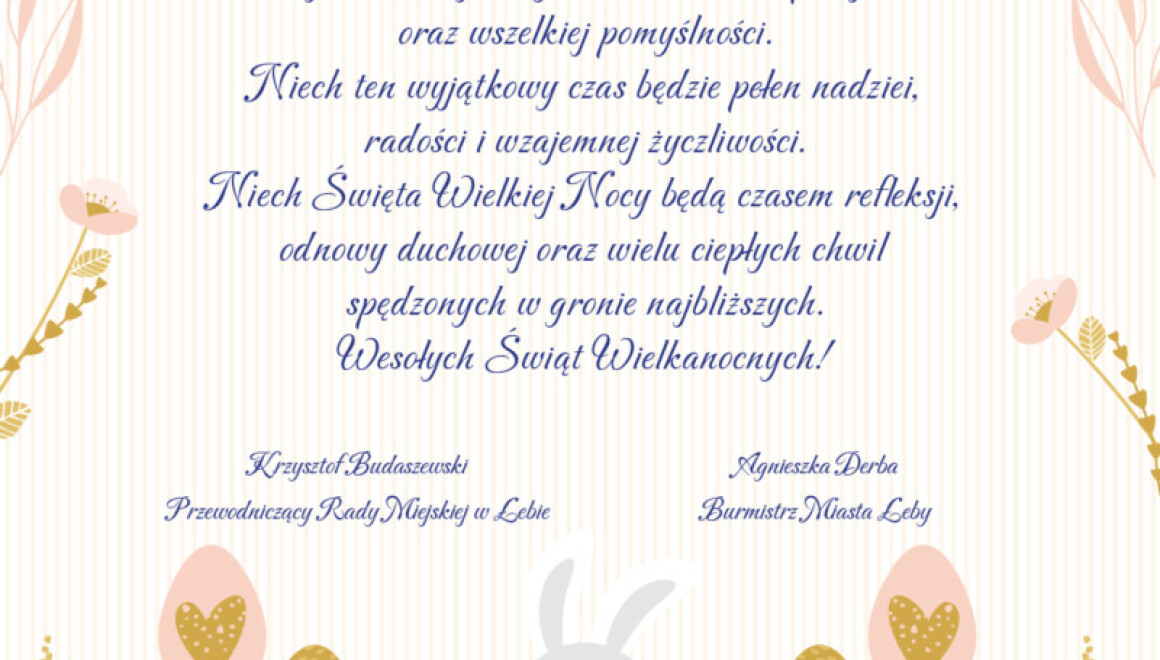 Niech Święta Wielkiej Nocy będą czasem refleksji, odnowy duchowej oraz wielu ciepłych chwil spędzonych w gronie najbliższych.