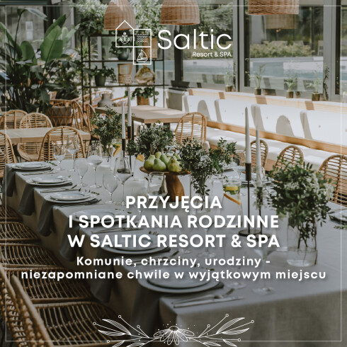 W Saltic Resort & Spa Łeba organizujemy wyjątkowe imprezy okolicznościowe - od komunii i chrzcin, przez urodziny i jubileusze, aż po inne rodzinne spotkania. Zapewniamy elegancką przestrzeń, wyśmienitą kuchnię oraz kompleksową obsługę dopasowaną do Twoich potrzeb.